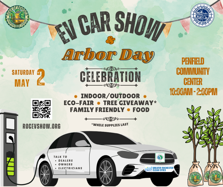 Penfield EV Car Show and Arbor Day Celebration by Olivia Amone | Mar 13, 2026 | Events! | 0 comments 02May2026 Drive Electric EventFrom 10 AM until 2 PMPenfield Community Center1985 Baird Rd Penfield, NY 14526Click HERE To Register
